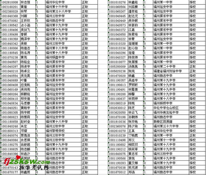2010年福建省高一新生录取名单(更新中)