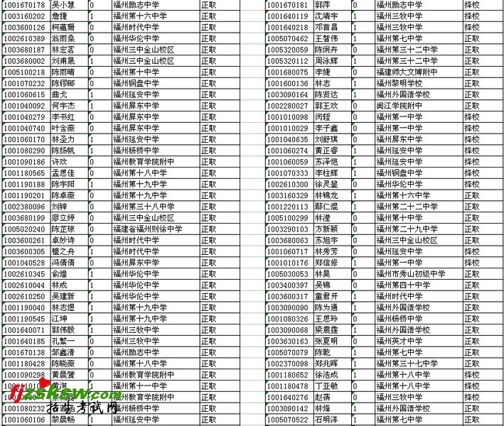 2010年福建省高一新生录取名单(更新中)