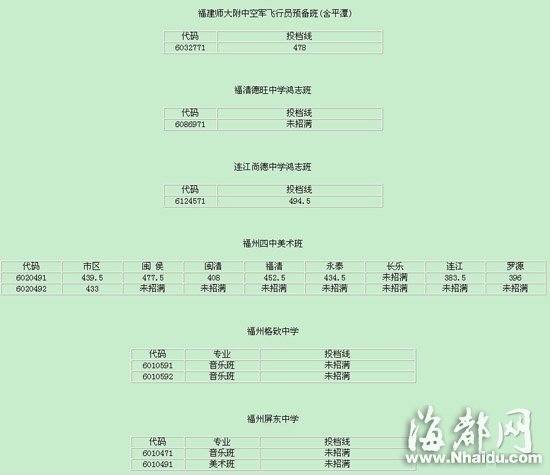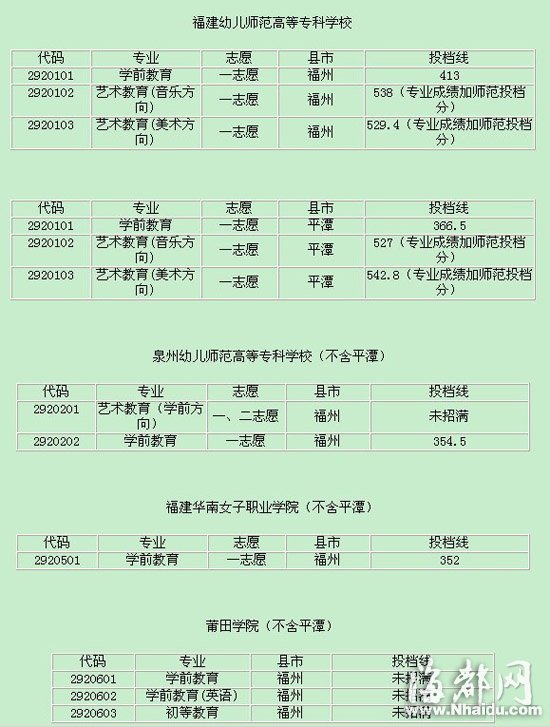 记者 李建芳) 7月9日,福州中招提前批师范类五年制高职、普高提前批学校开始录取。 提前批学校(专业)投档线如下: