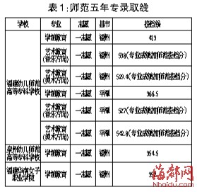 据了解,今年共有4所师范五年专、9个专业面向福州和平潭招生,在最低控制线330分上进行招生。福建幼儿师范高等专科学校(即原福建儿童发展职业学校)的3个专业在福州和平潭招生全部招满,切出了录取线。福建华南女子职业学院的学前教育专业招生已满(如表1)。