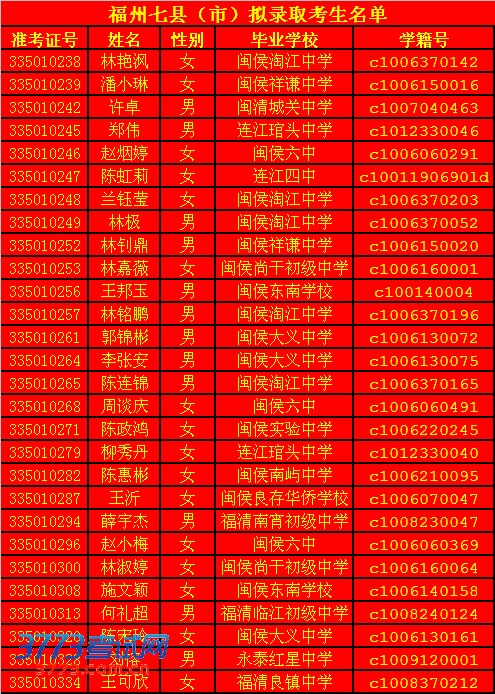 依据《2013年福州高级中学自主招生简章》规定,我校于5月12日举行自主招生考试。学校采用网络阅卷,每份试卷都经过双评,双评分值超过误差允许范围的试卷实行三评,依据考试成绩择优确定前78名拟录取学生名单,现予以公示,公示时间5月14日至5月16日。
