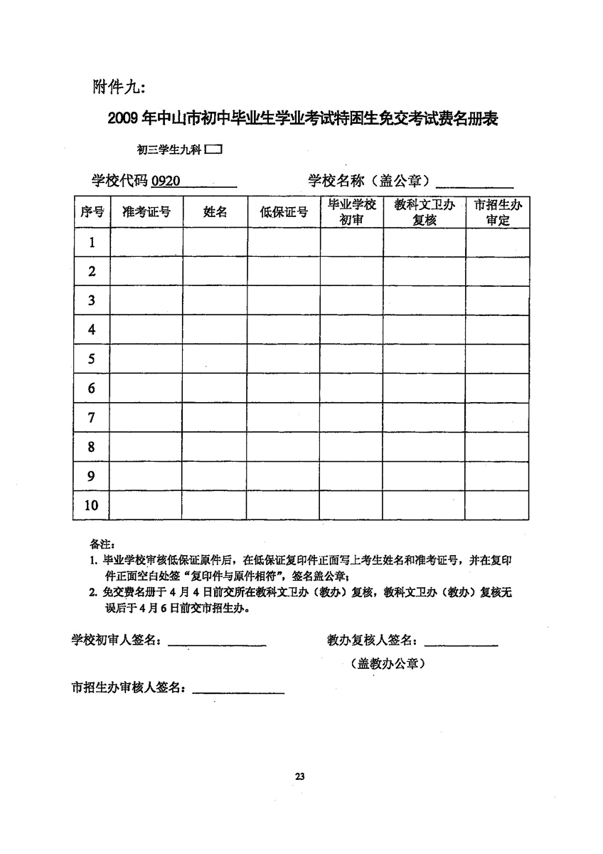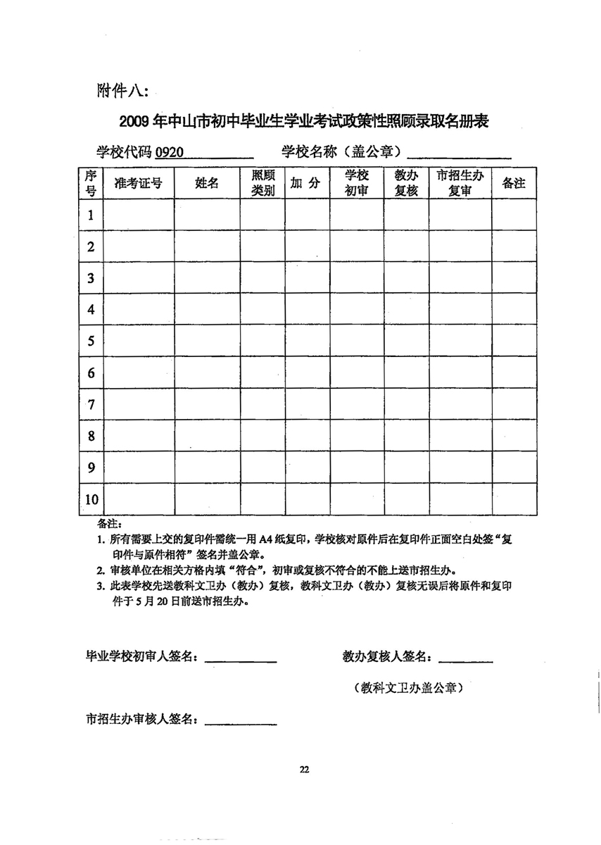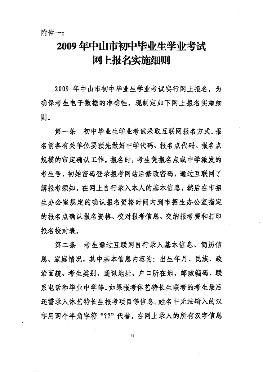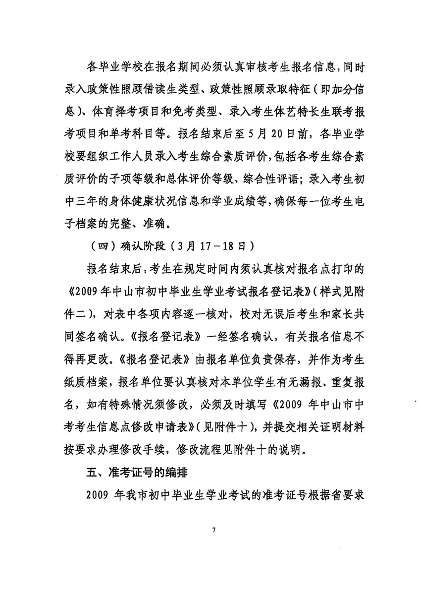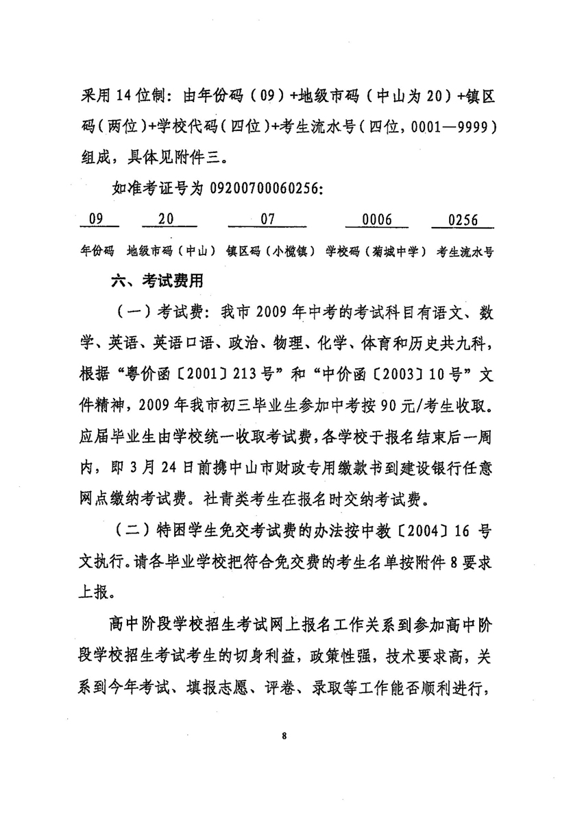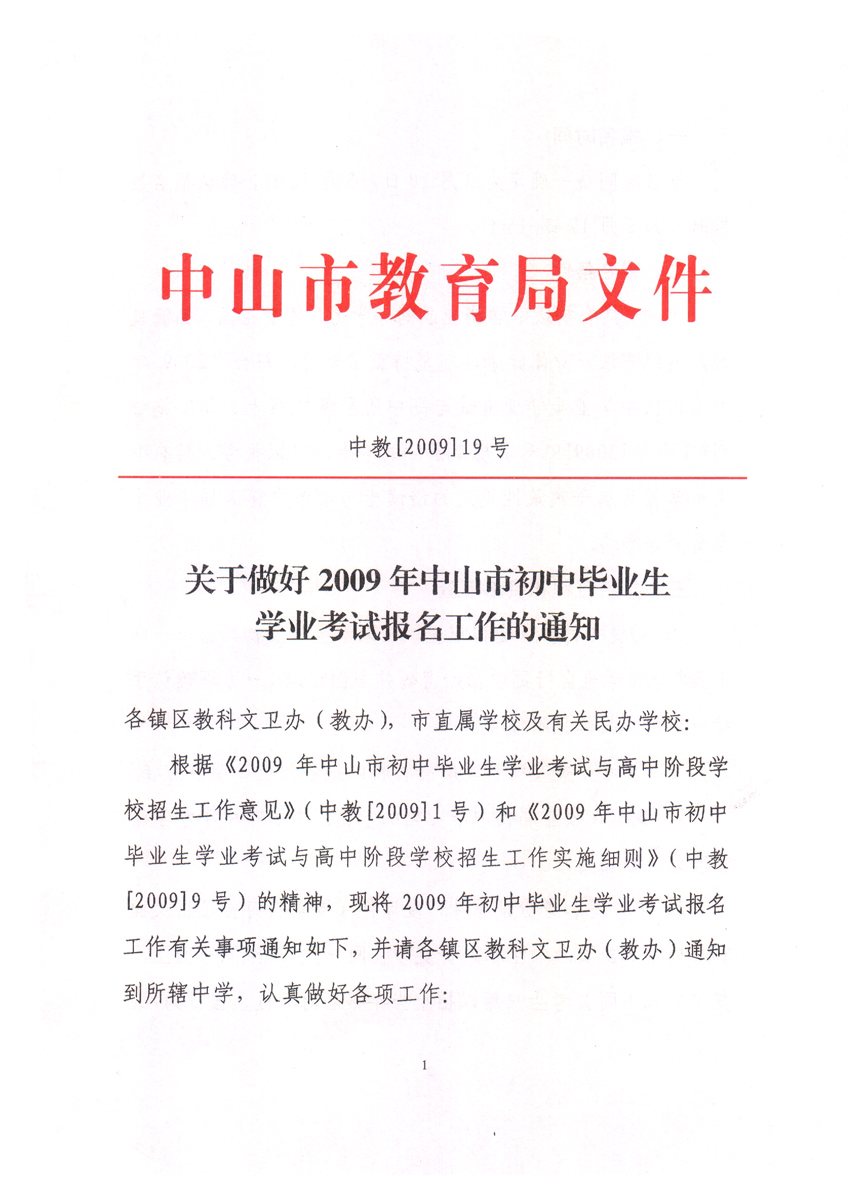 中山招考网2009年中考考试报名工作的通知