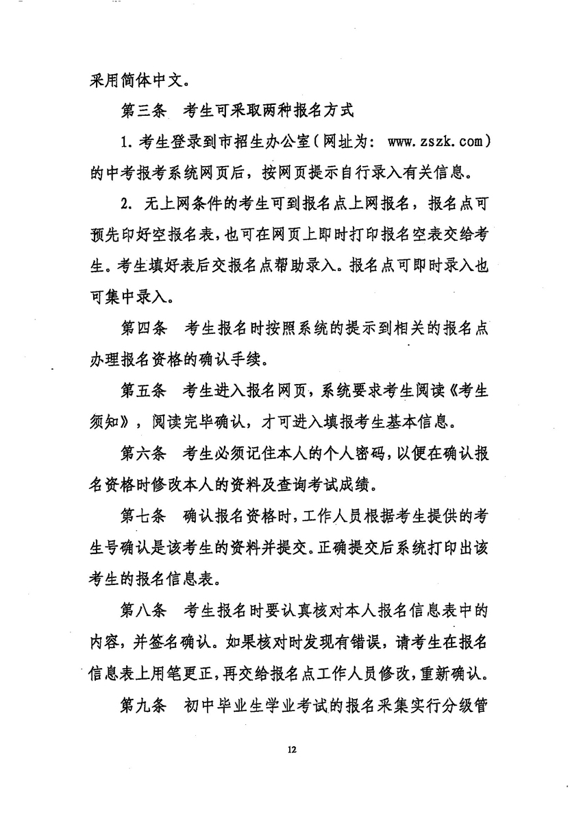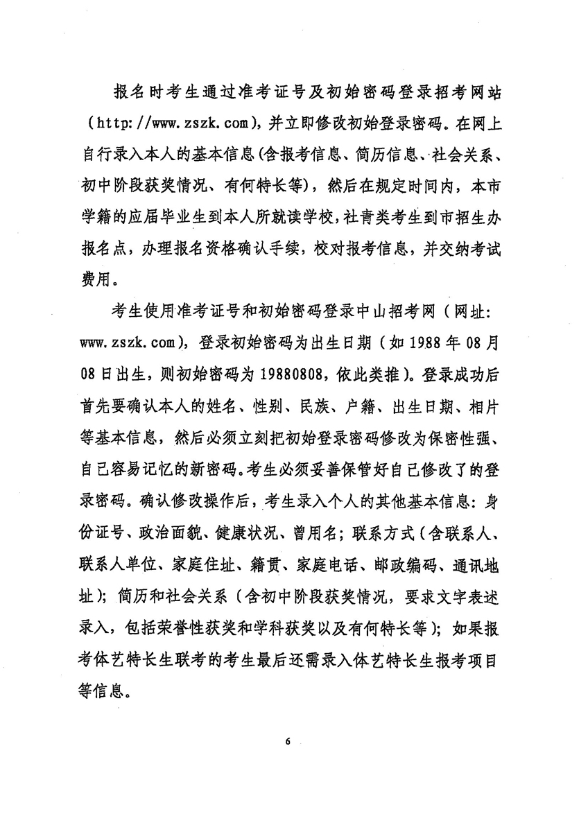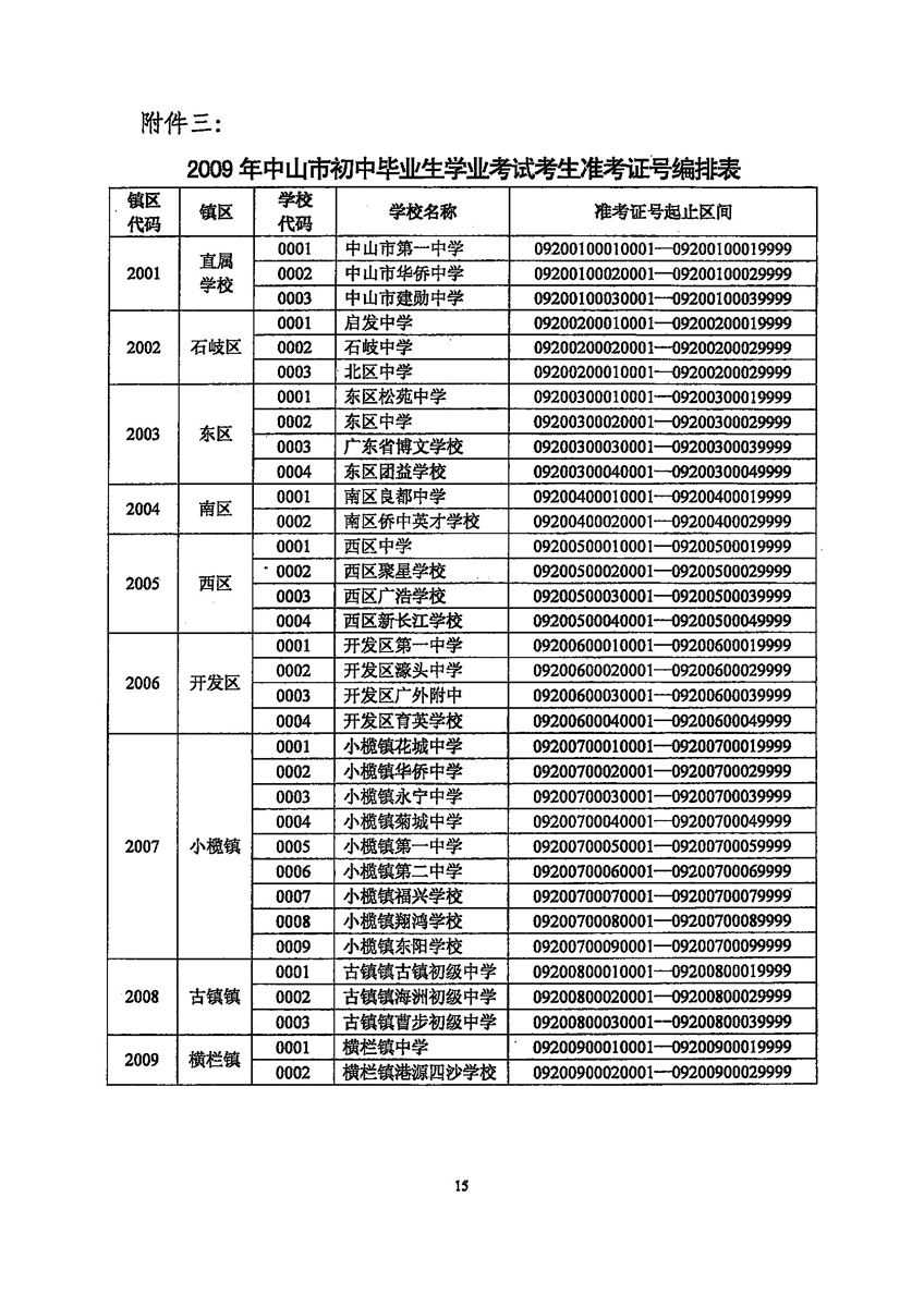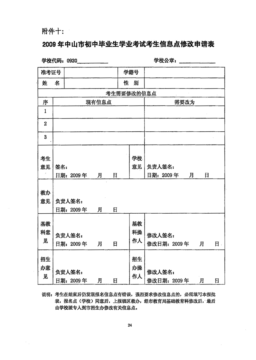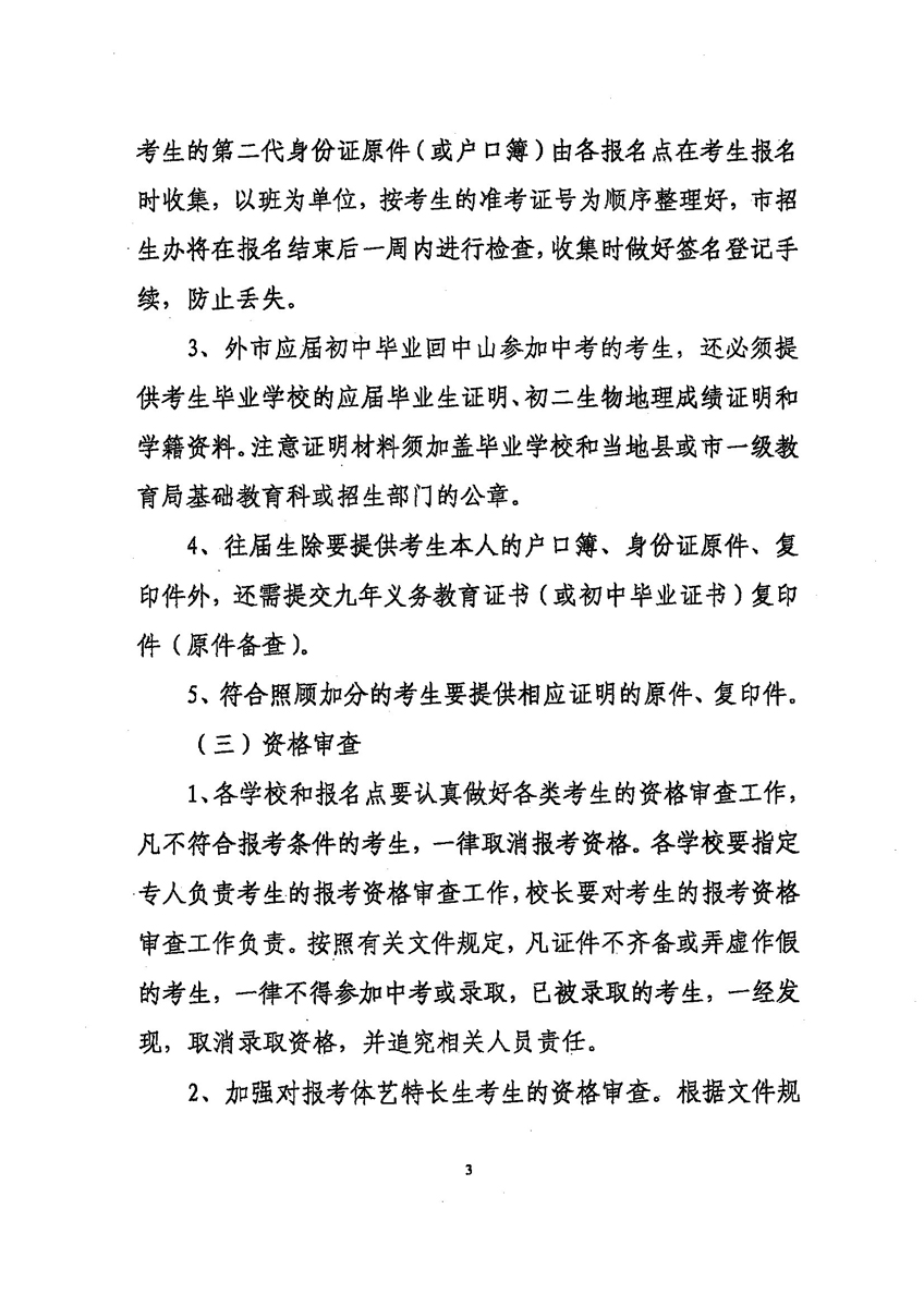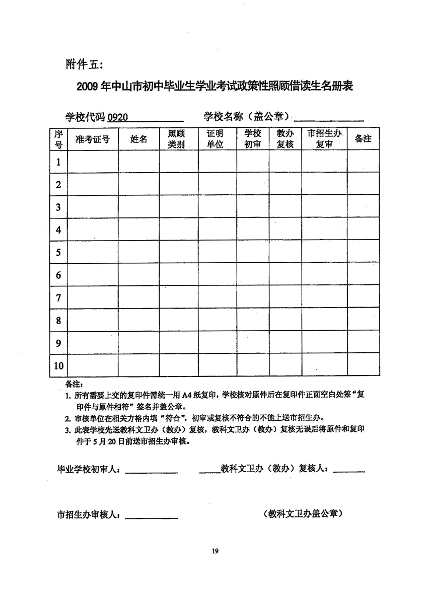 中山招考网2009年中考考试报名工作的通知