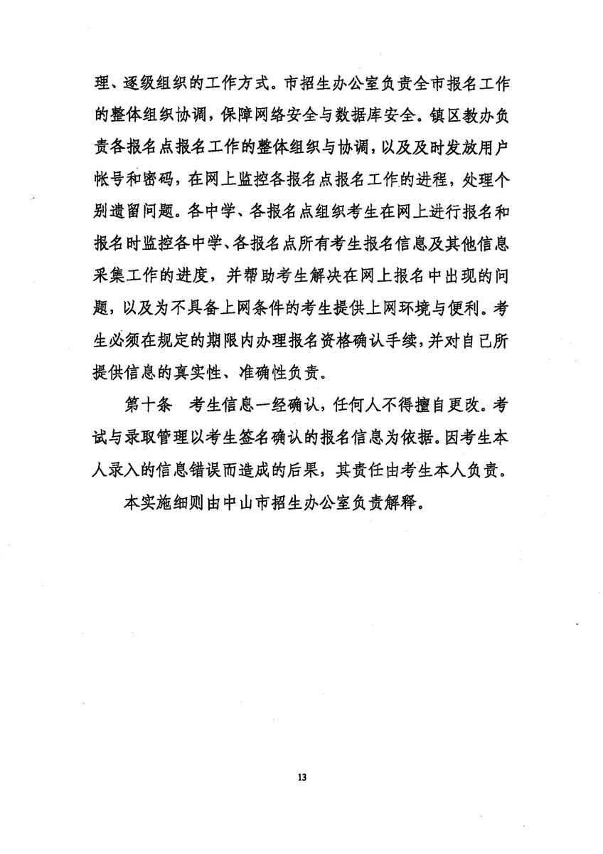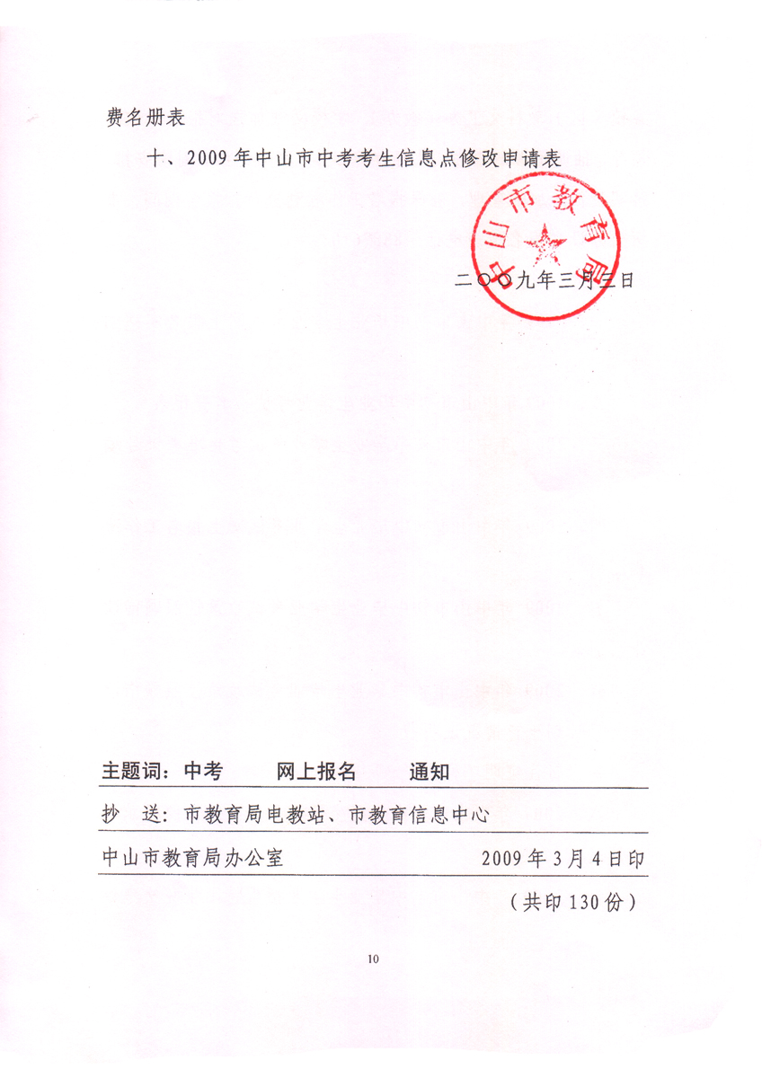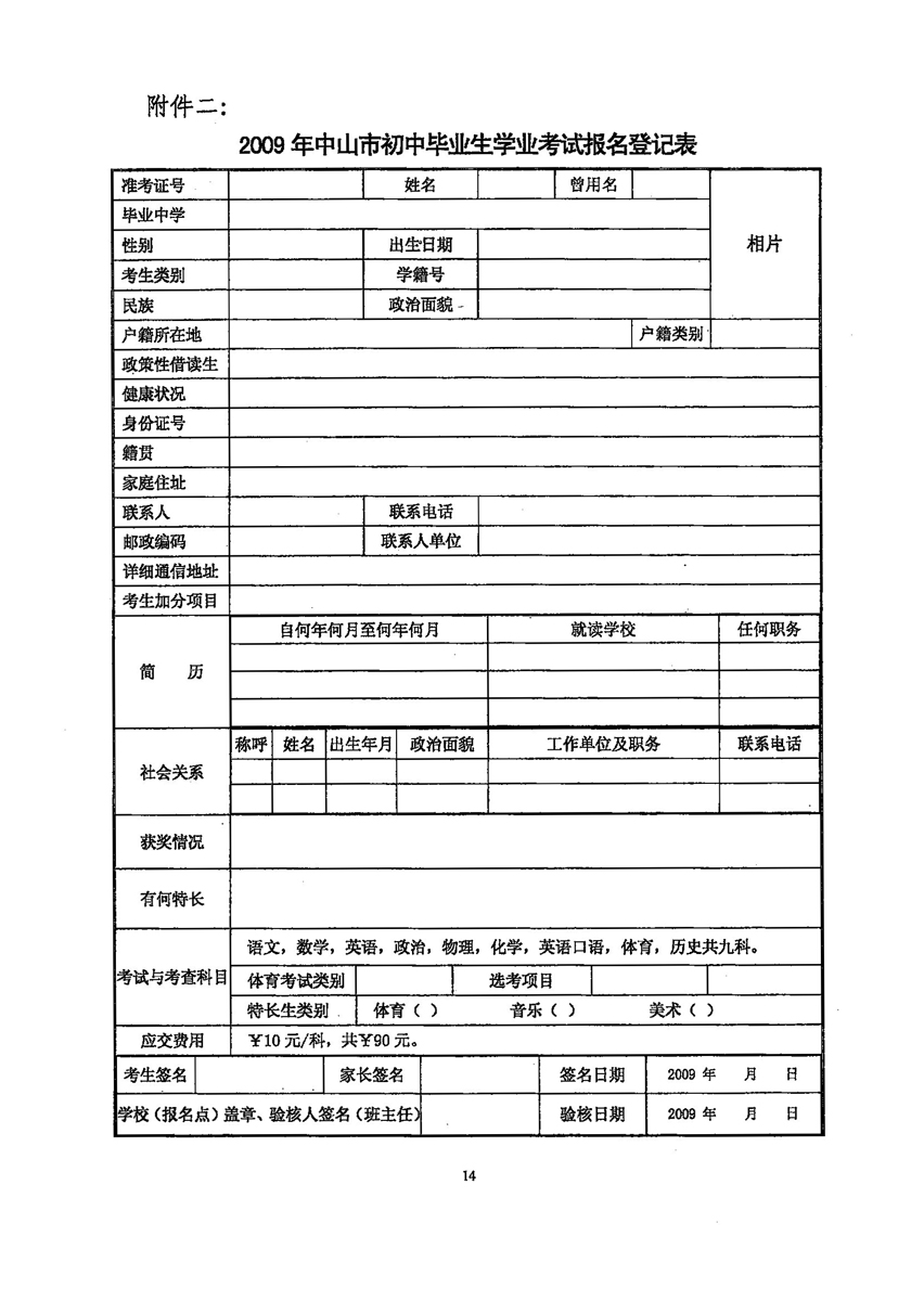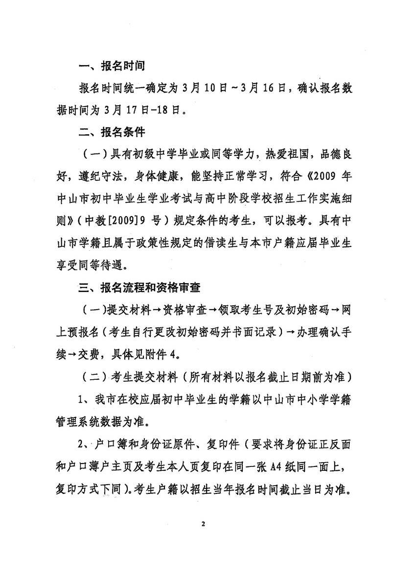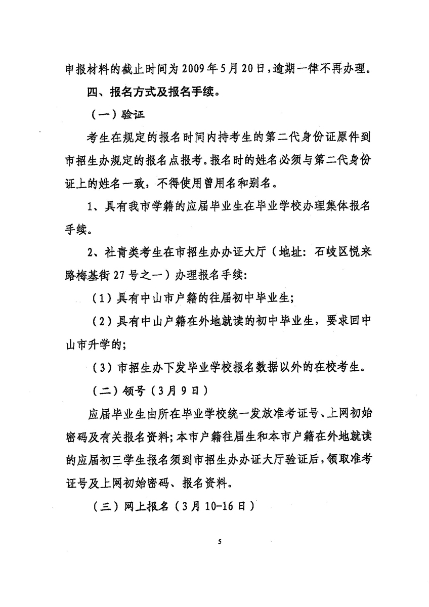 2009年中山中考报名时间是3月10日至16日