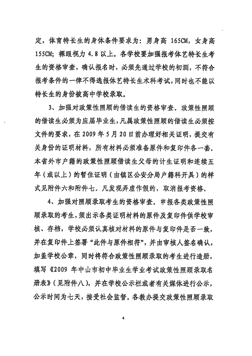 2009年中山市中考招生工作实施细则出台