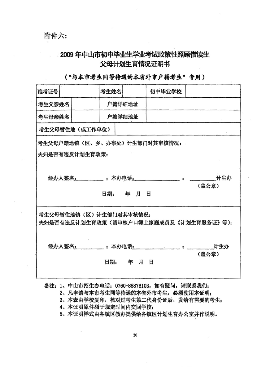 2009年广东中山中考入户考生须及时办手续