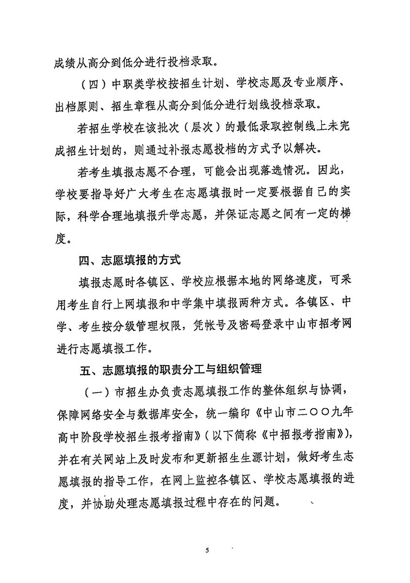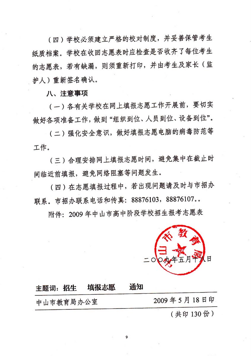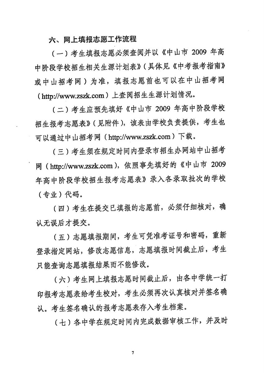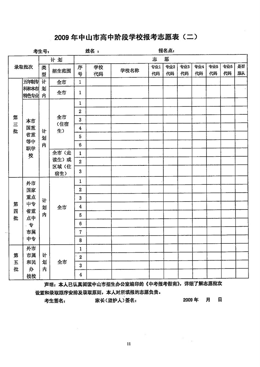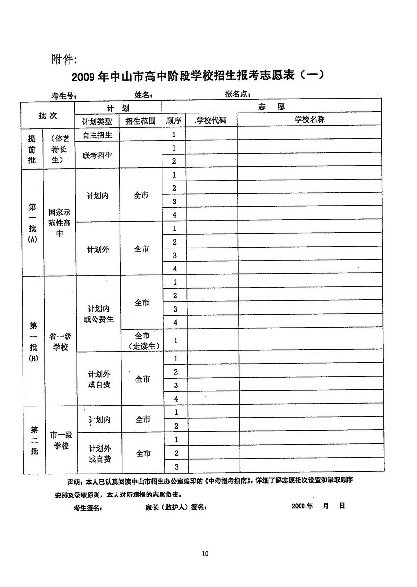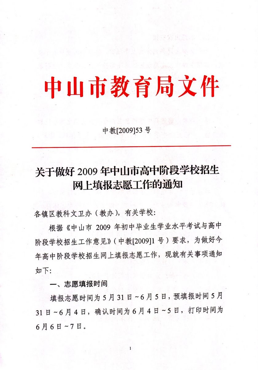中山市教育局2009年中考招收体艺特长生实行考试的通知
