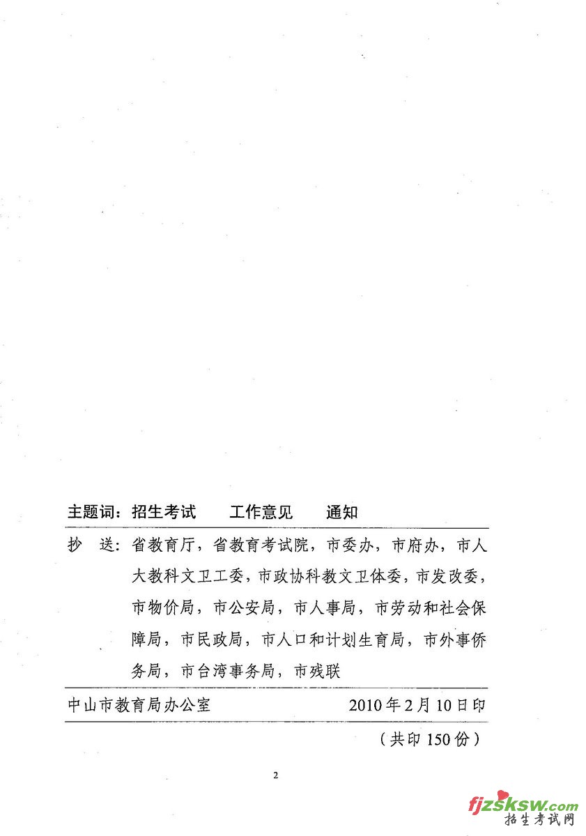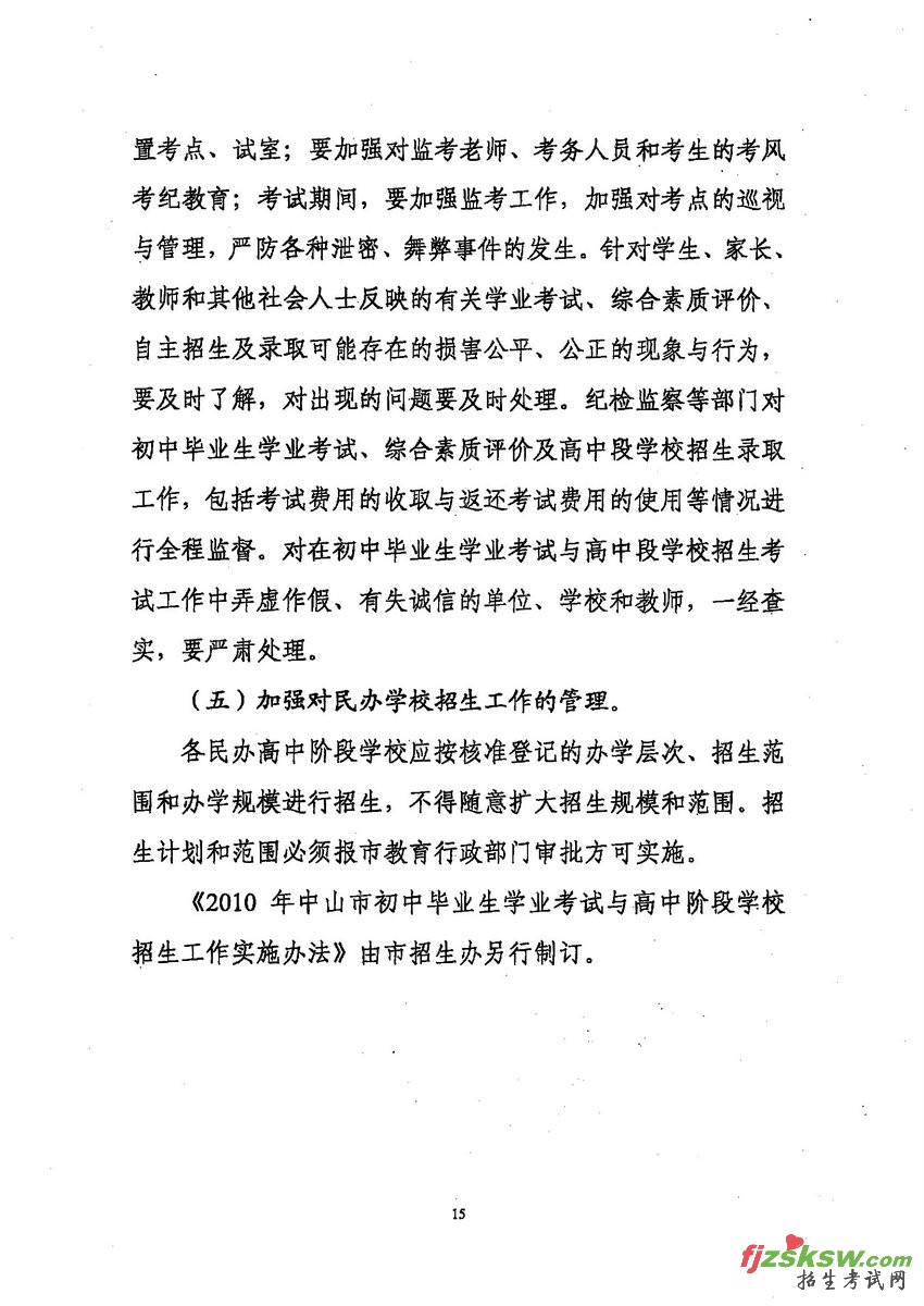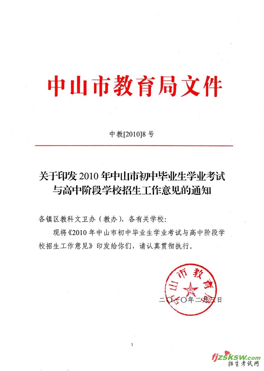 关于印发2010年中山市初中毕业生学业考试与高中阶段学校招生工作意见的通知