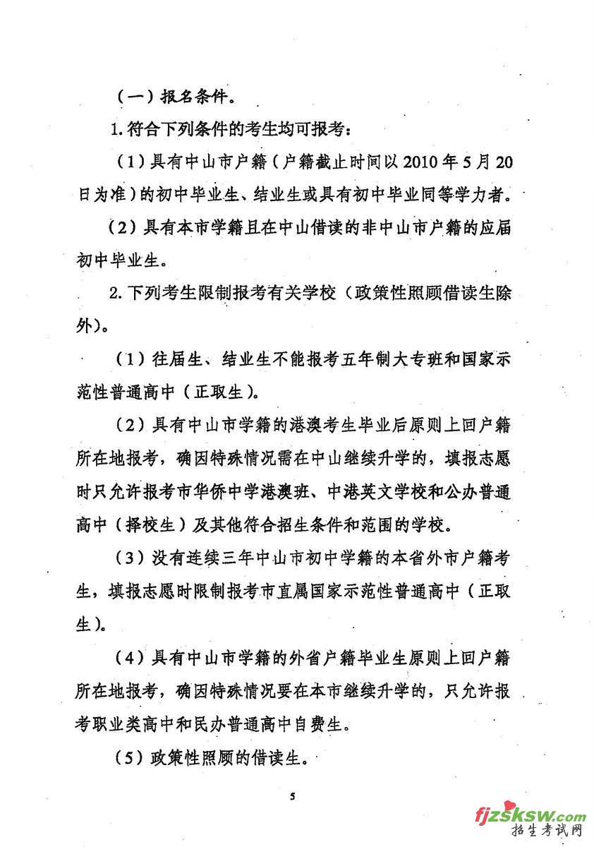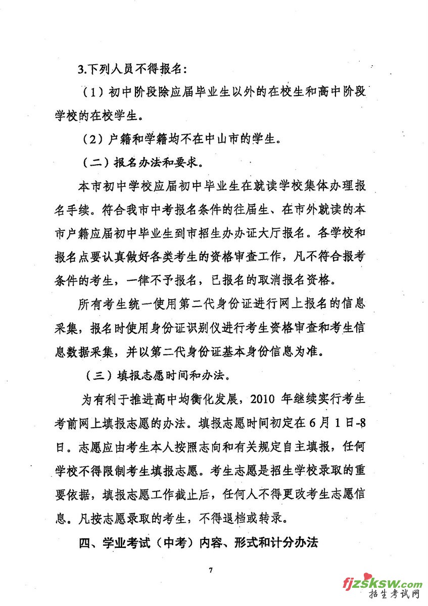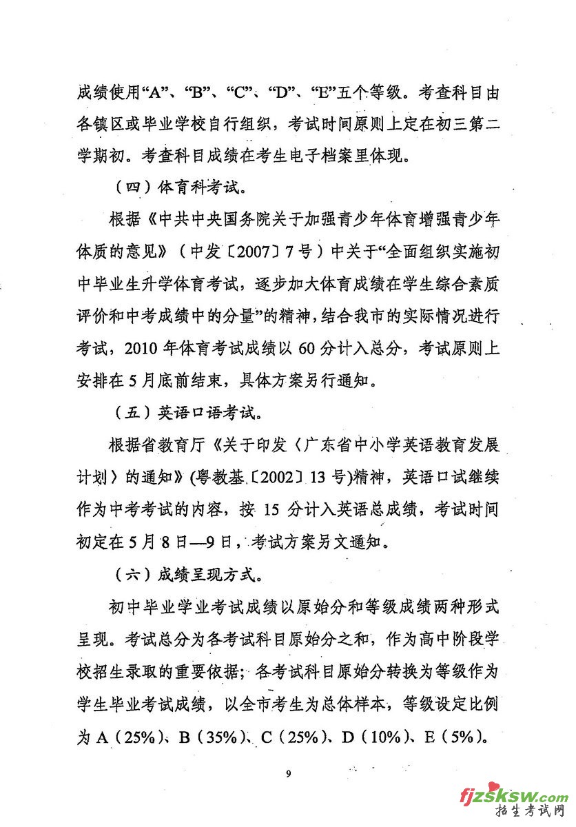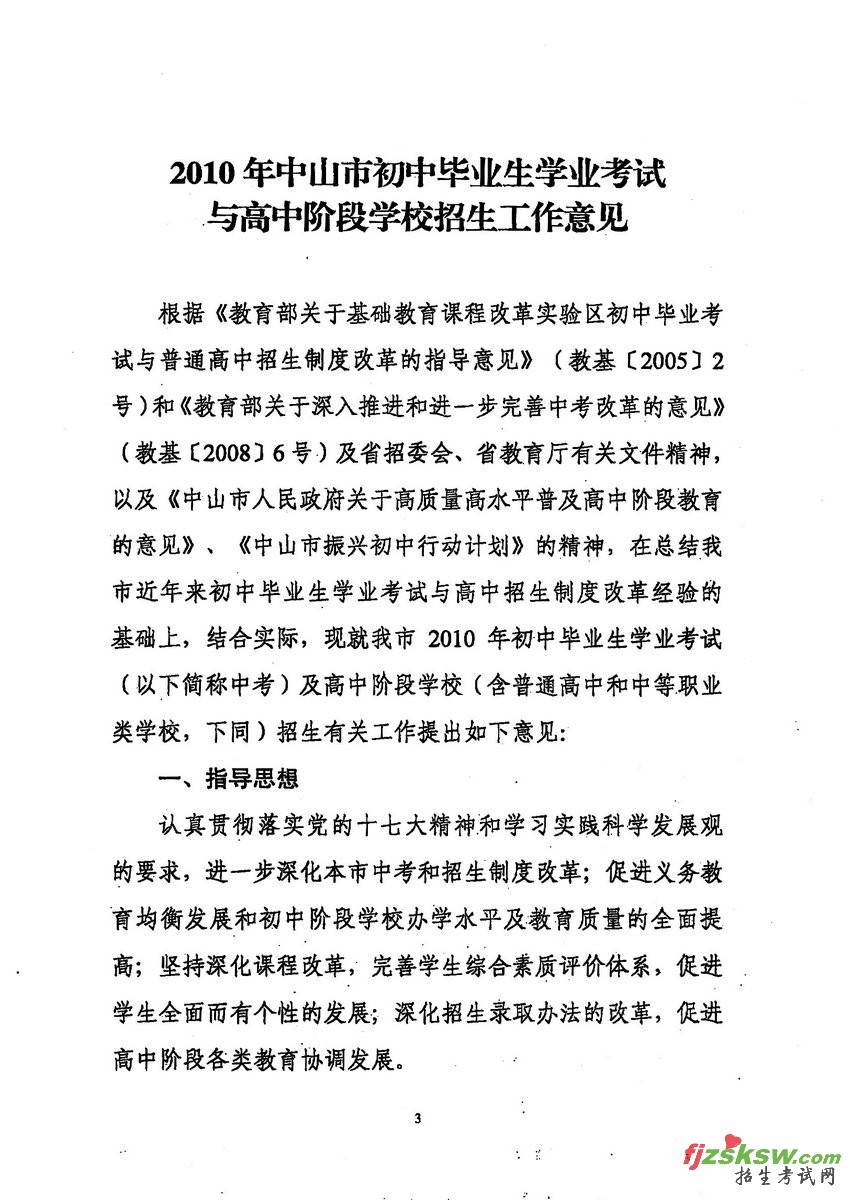 2010年中山市中考与高中阶段学校招生工作意见的通知