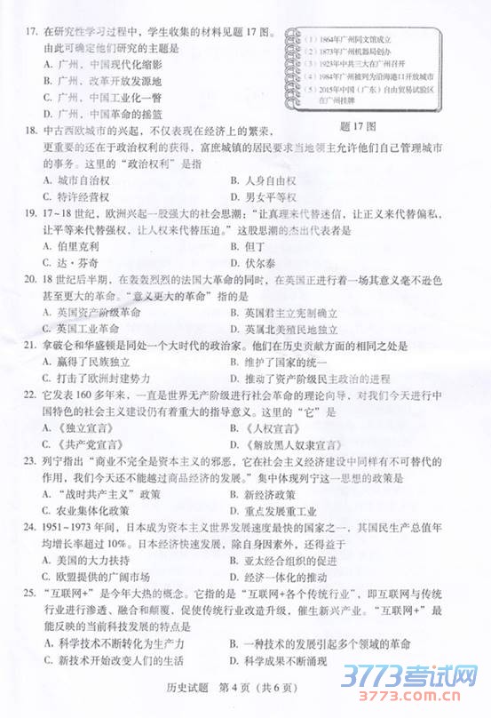 2015广东中考历史试题发布