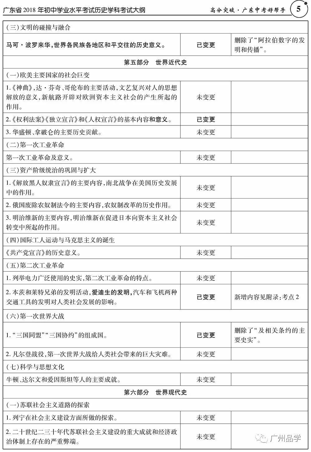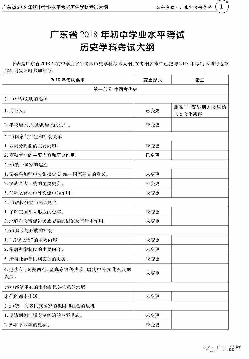 2018广东中考历史考试大纲已经出炉, 独家整理发布,各位老师、同学家长们请注意最新考纲变化,也请分享给身边需要的师生,为中考加油!