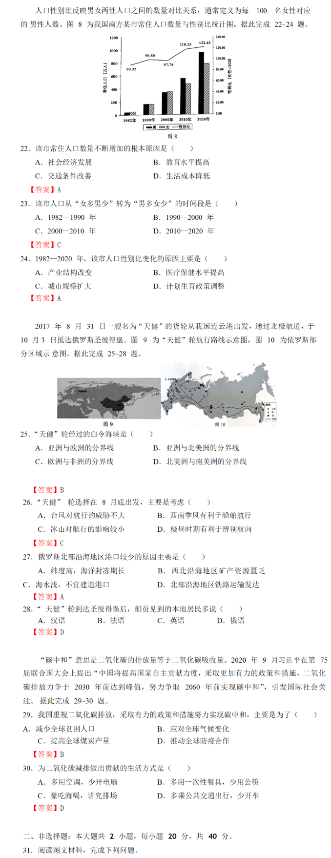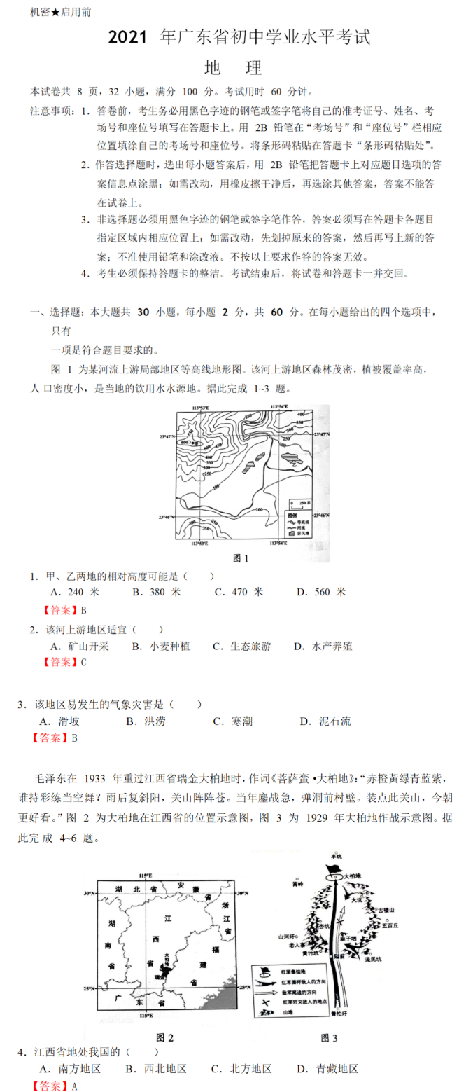 2021广东省中考地理真题及答案发布