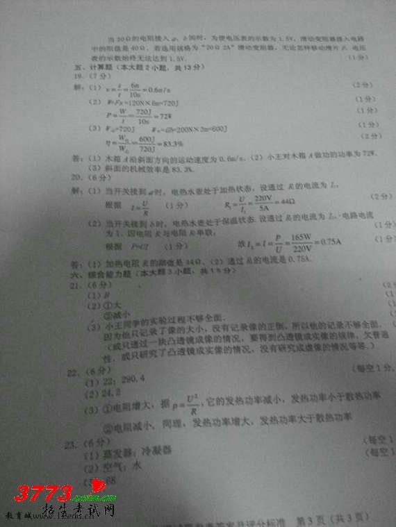 中考试题答案网