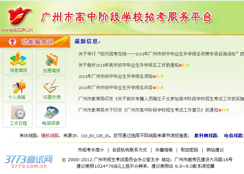 凭基本信息填报时的考生号和密码登录广州市高中阶段学校招考服务平台(网址:http://zhongkao.gzzk.cn/,下简称“中招服务平台”)