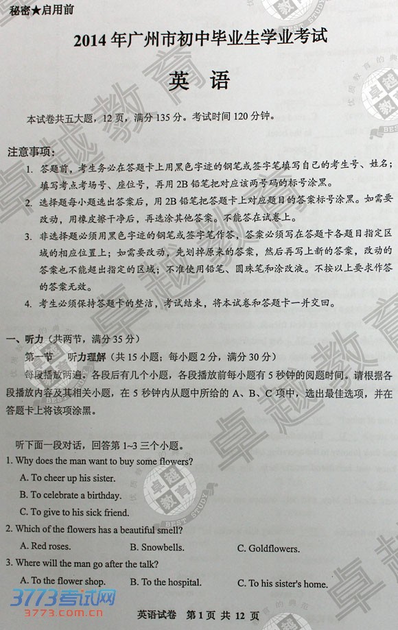 为大家整理了本次中考真题及答案,本文为2014年广州中考英语试卷。