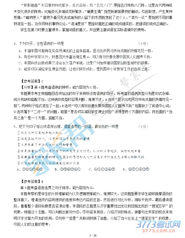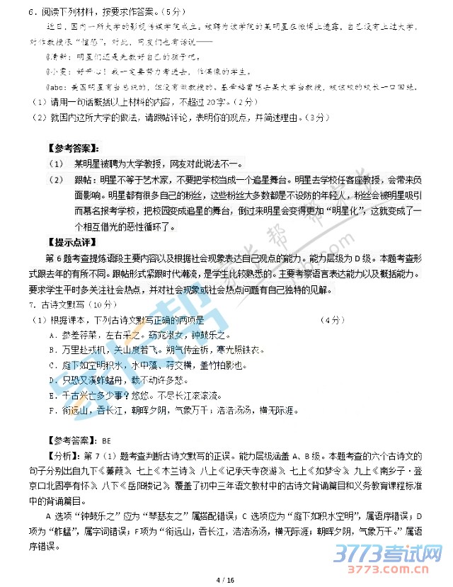 2015年广州中考语文试题及答案发布