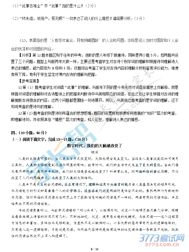 2015年广州中考语文试题及答案发布