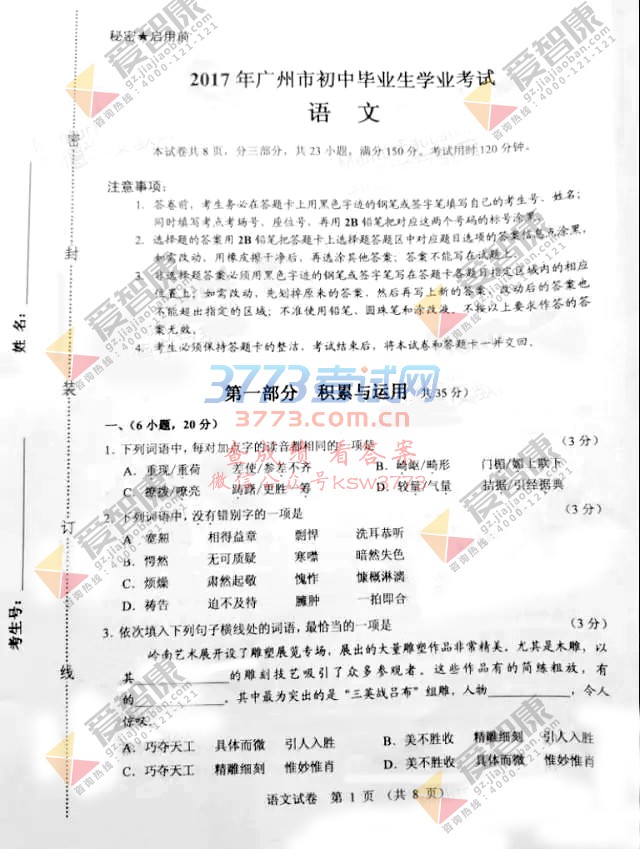 3773考试网 - 中考 - 各省中考 - 广东中考 - 广州中考 - 正文