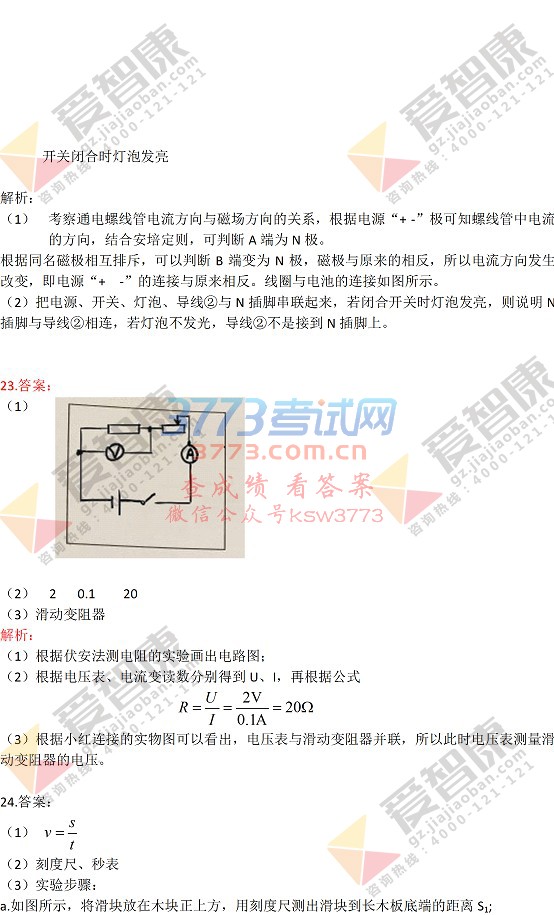 2017广州中考物理试题及答案解析发布