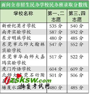 本报讯 (记者张颖妍)记者昨日从市中招办获悉,继东华高级中学和光明中学民办班录取后,同属列入分片招生和镇街内招生的公办普通高中和民办普通高中的民办班的“第二批”录取学校的录取分数线正式公布,而“第二批”学校的招生工作也随即展开。