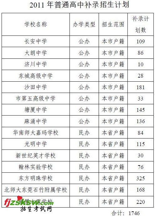 2011年东莞普通高中常规录取及注册工作已结束,昨日下午,市中招办公布常规注册后尚有部分空余学位的普通高中学校与具体空余学位数目,考生今日起可登录东莞教育网查询补录招生计划并于明天填报补录学校志愿。补录结果将于24日公布。