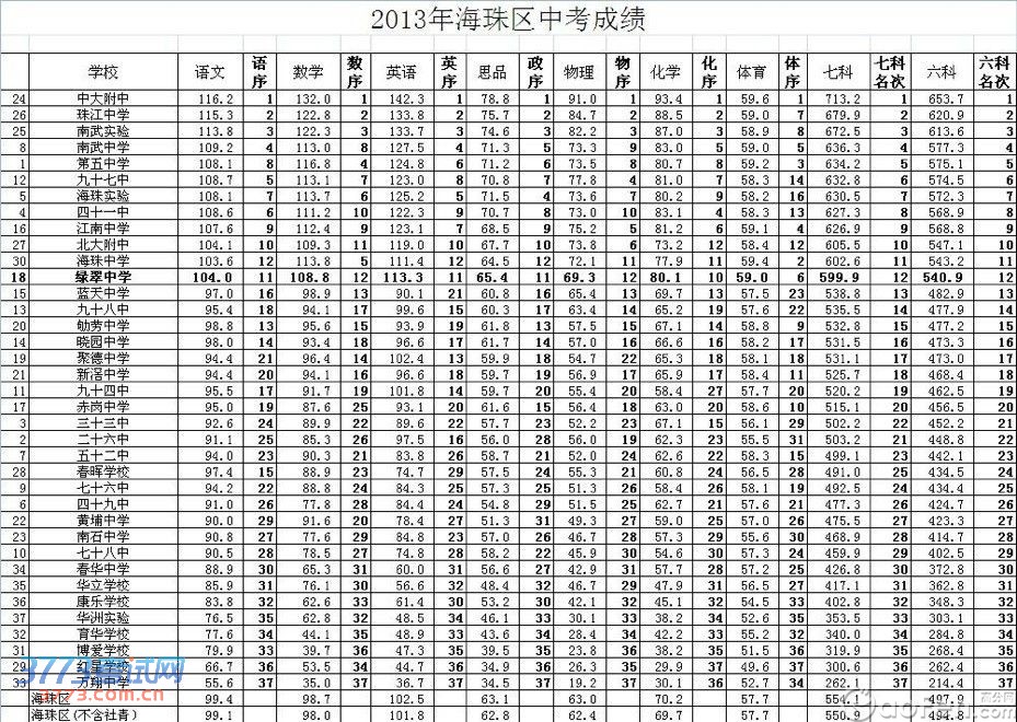 2013年7月8日广州中考录取工作开始进行,独立批次已经完成,社区家长传了一份海珠区各校中考成绩排名统计表,中大附中、珠江中学、南武实验排前三,这三所学校都是公办民校的学校!供大家参考!