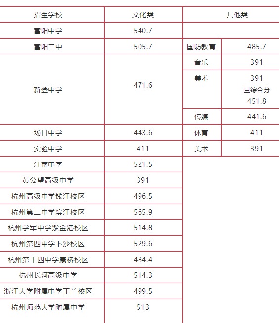 富阳区教育局划定2019年富阳区各类高中招生录取分数线。普高最低录取控制分数线为411分,职高、技校最低录取控制分数线为160分。