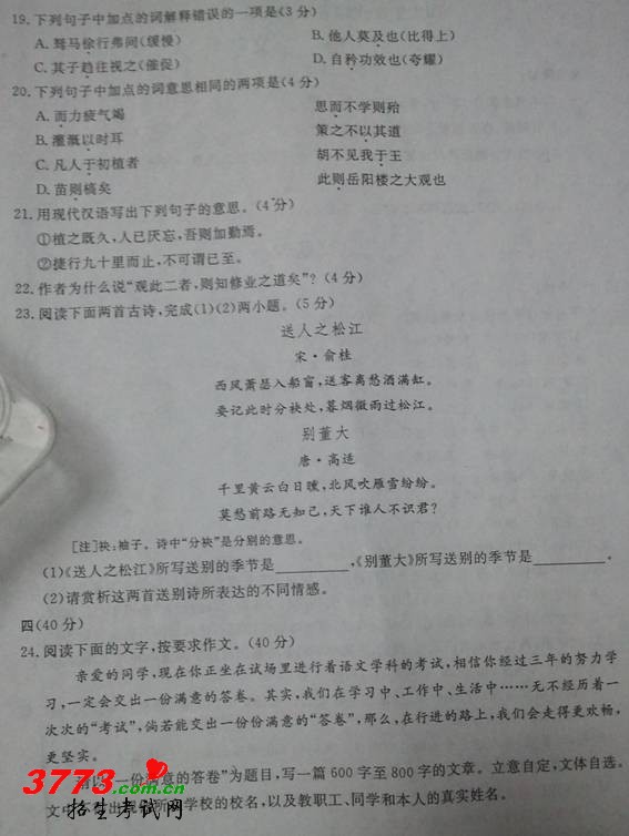 杭州2012年中考语文数学和思品历史与社会难度不大