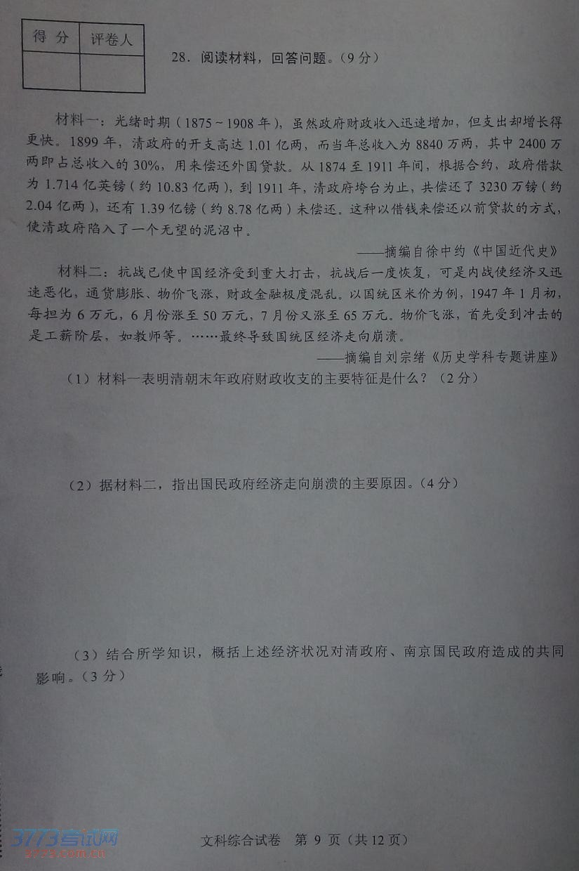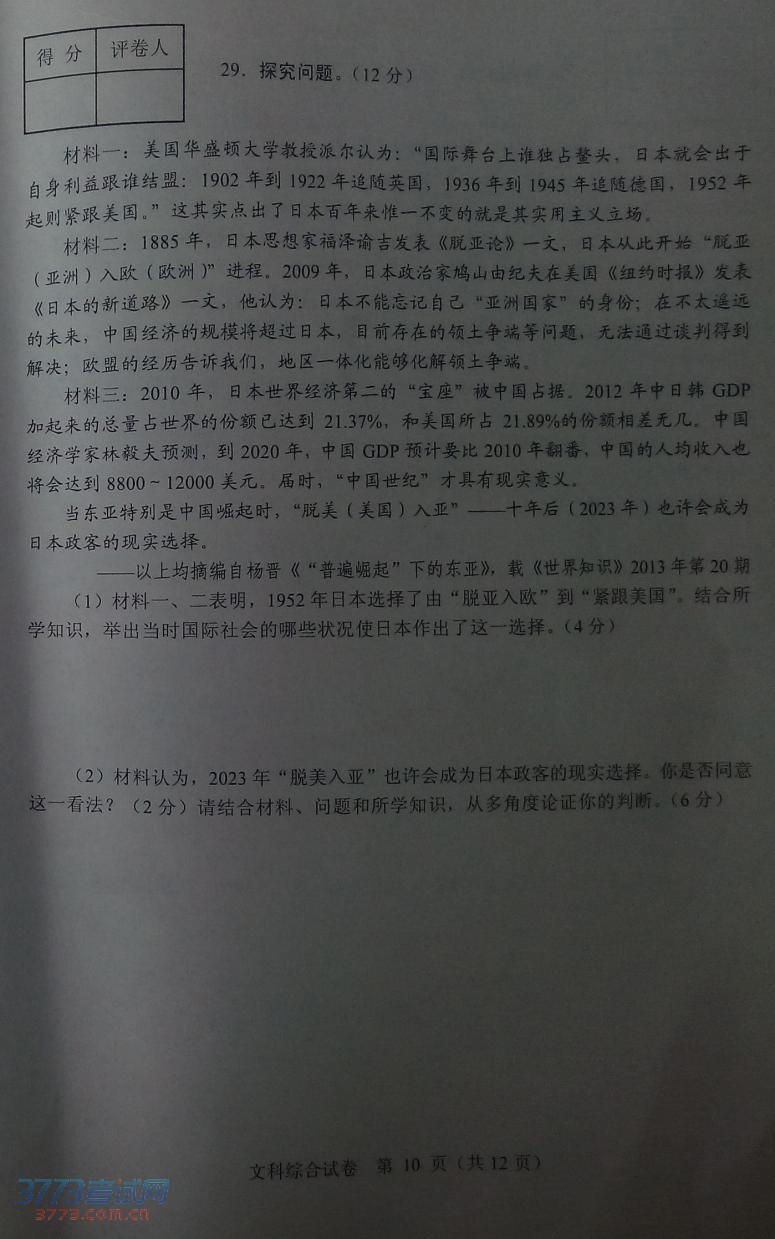 2014河北中考文综试卷答案发布