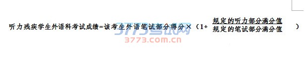 7. 凡持有残疾证的听力残疾学生,经本人申请,县(市、区)教育局认定,可以免外语听力测试。听力残疾学生免外语听力测试考生的外语成绩按以下公式计算: