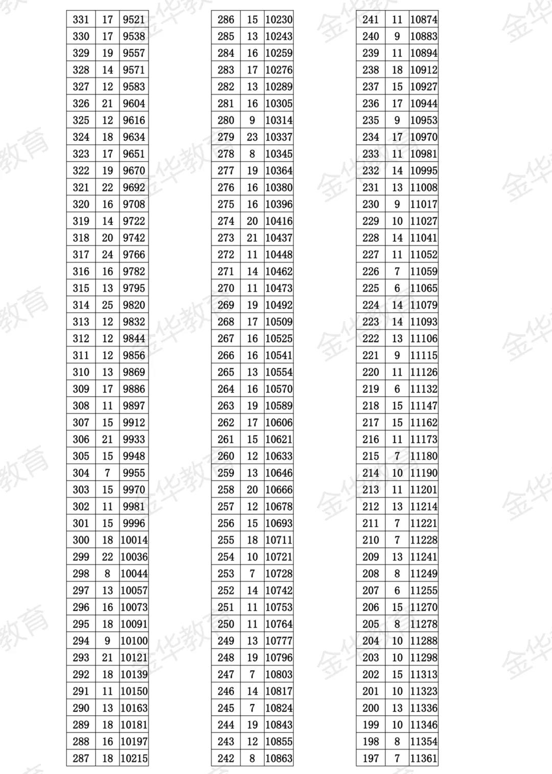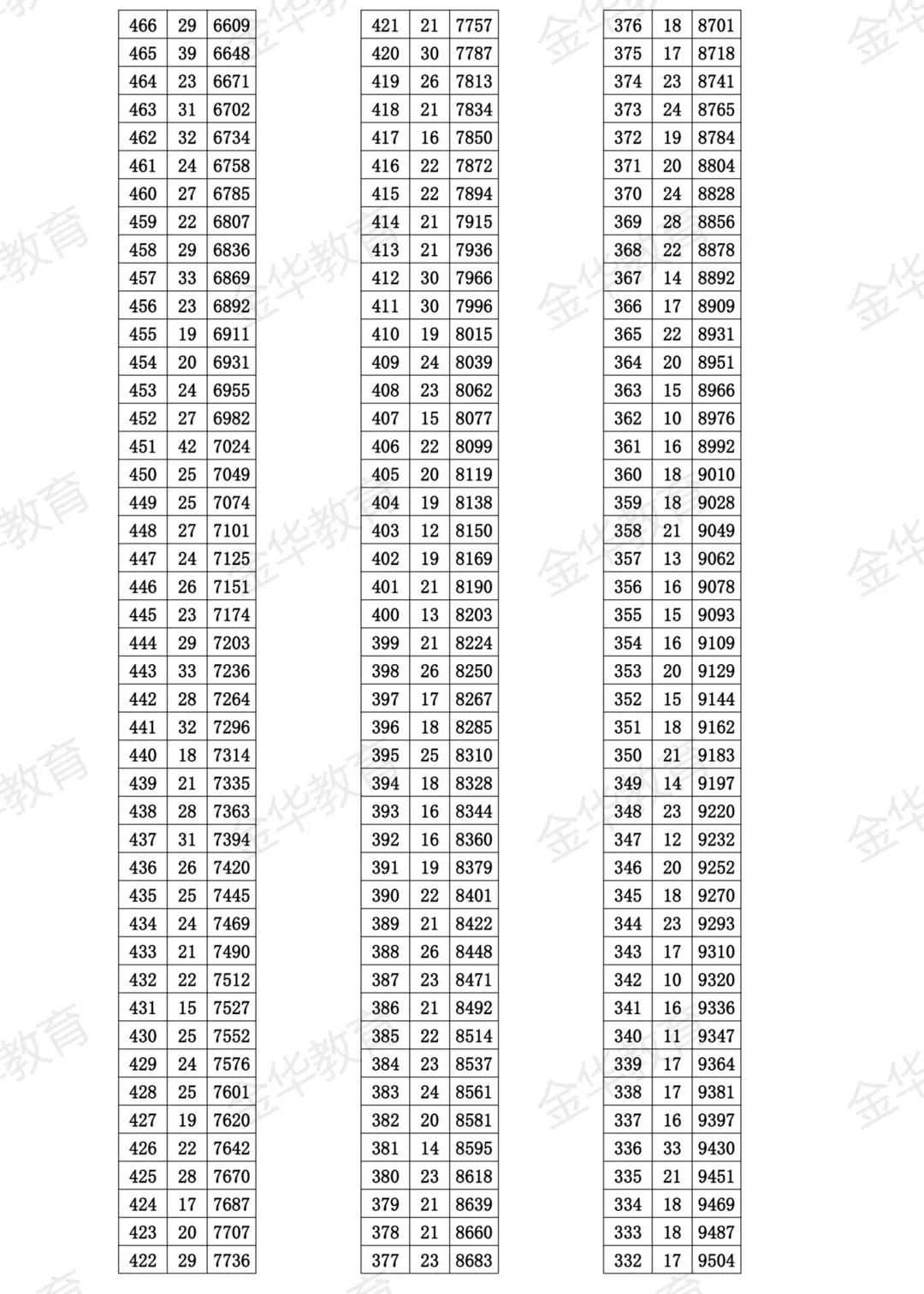金华市区2021年中考成绩一分一段表出炉,通过了解各分数段情况,考生可清楚自己所处的位置,方便更好填报志愿。