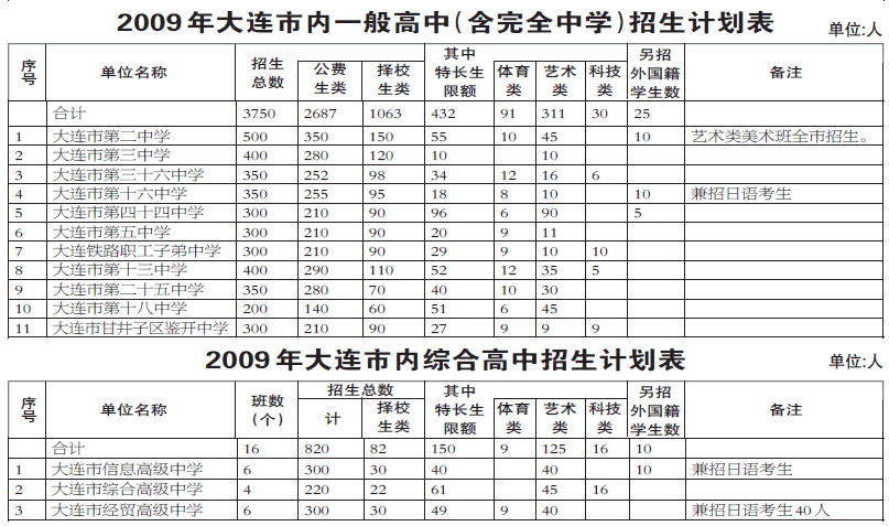 昨日,市教育局发布2009年大连市公办高中的招生计划。记者了解到,今年公办高中招生总数为9760人,比去年减少80人。其中重点高中招生总数为6010人,一般高中招生总数为3750人。
