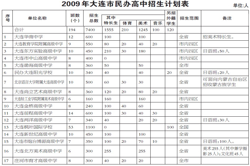 2009年大连市普通高中招收体育、艺术、科技类特长生规定