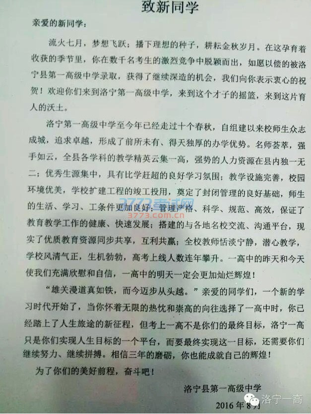 3.洛宁一高中对成绩优异的新生的优惠政策
