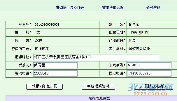 退出系统后,考生可以凭考生号和个人密码多次登录系统浏览其所填报的志愿信息。