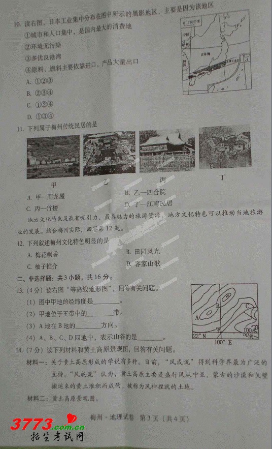 梅州市2012中考考试生物试卷参考答案及评分标准