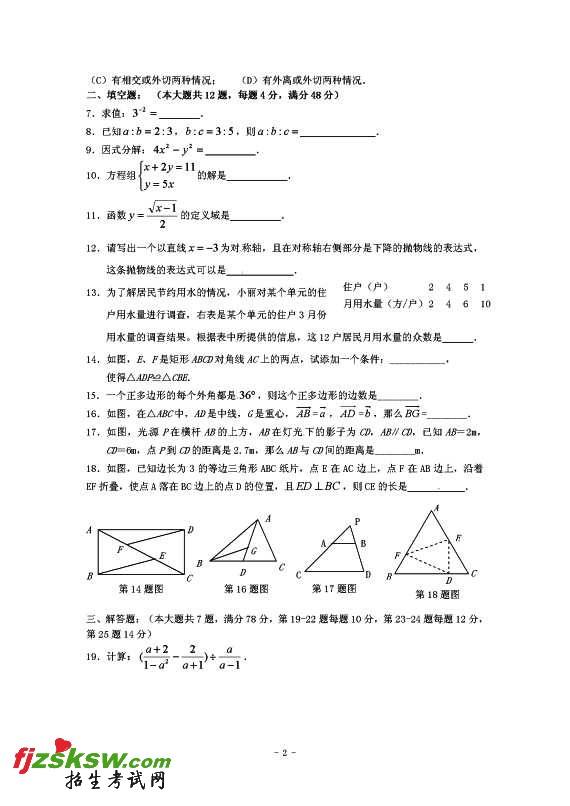 2011年上海青浦区中考数学模拟试题及答案