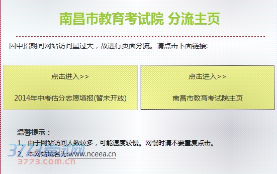 南昌市教育考试院 分流主页 因中招期间网站访问量过大,故进行页面分流。请点击下面链接: