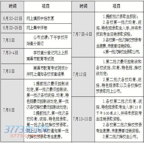 南昌市2014年市区高中阶段招生录取日程安排表