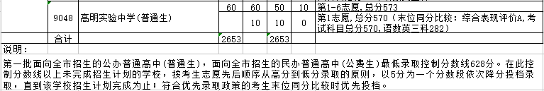 9048 高明实验中学(普通生) 60 60 50 10 第1-6志愿,总分573