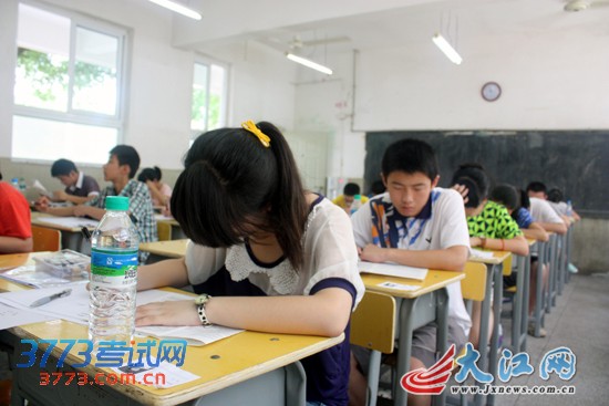 大江网讯 记者叶新阔报道:6月17日上午8点30分,随着语文科目考试铃声的响起,南昌市2013年中考正式拉开帷幕。据悉,今年南昌市参加中考的考生有55858人,共设48个考点,1880个考场。为方便监考教师核对考生信息,今年南昌中考首次将考生照片印上座位号。