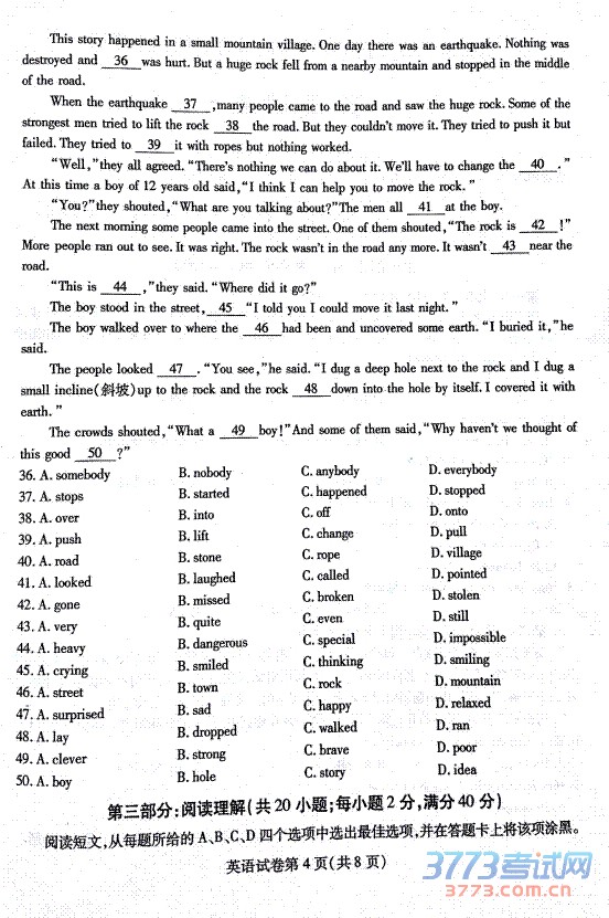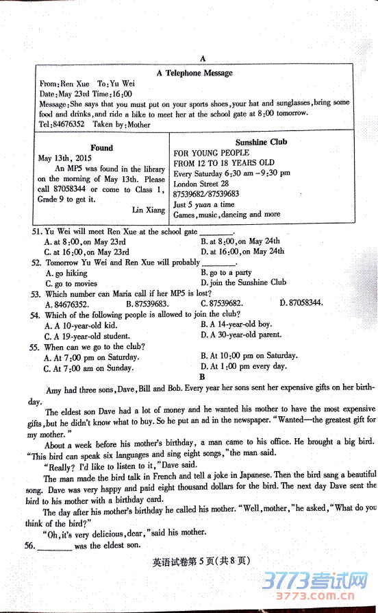 2015南充中考英语试题发布