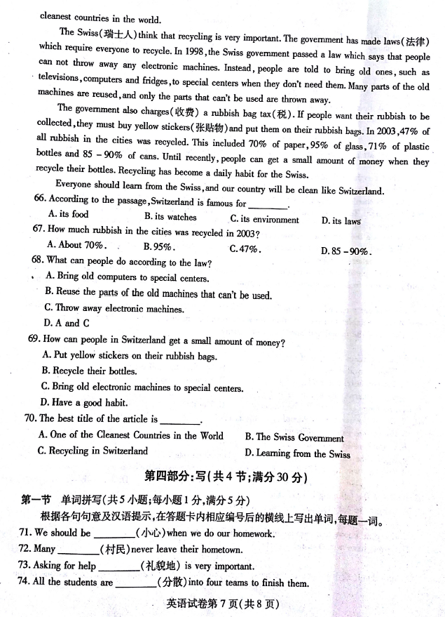 2015南充中考英语试题发布
