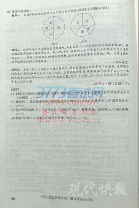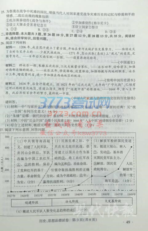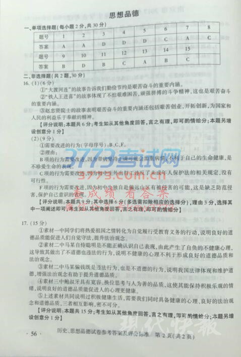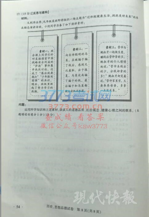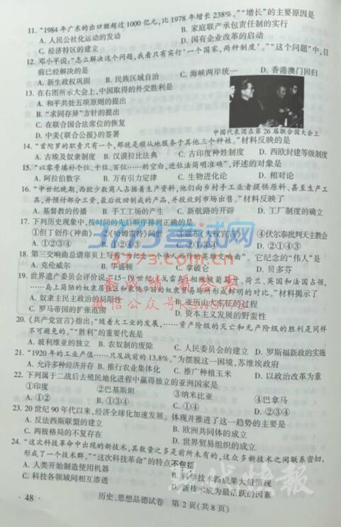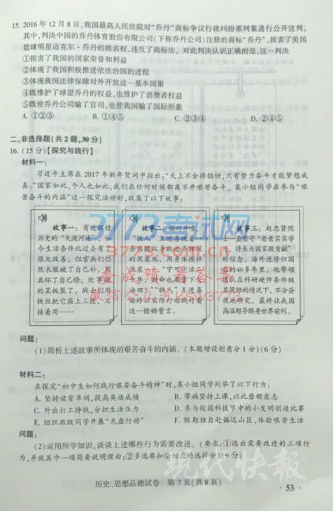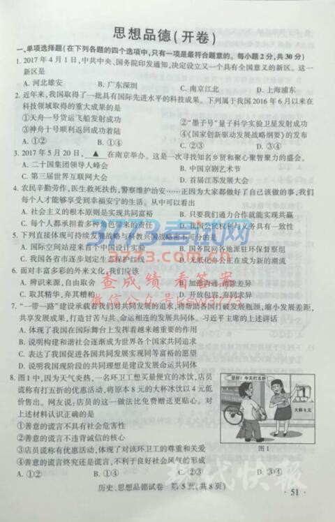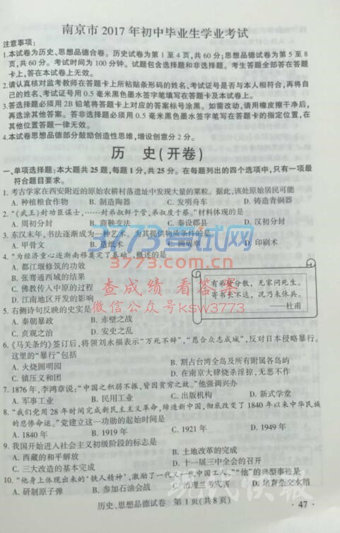 2017南京中考历史政治试题及答案发布