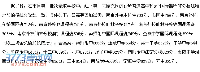 金陵中学国际课程班699分(以上均含英语加试成绩)。