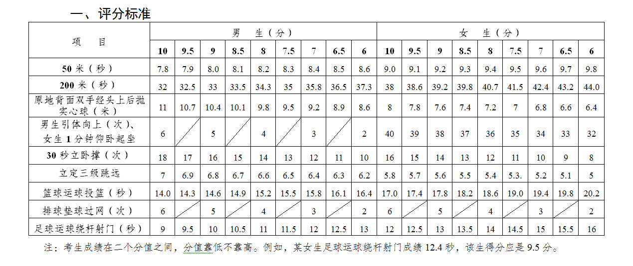 6.无故不参加毕业升学体育考试的考生,成绩为零分。