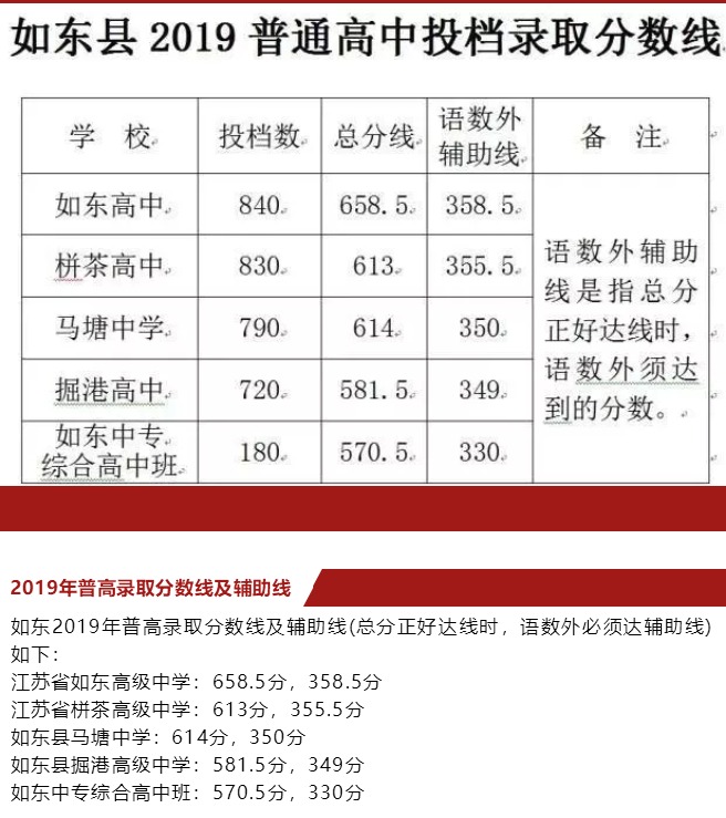 2019年如东普通高中投档录取分数线公布!
