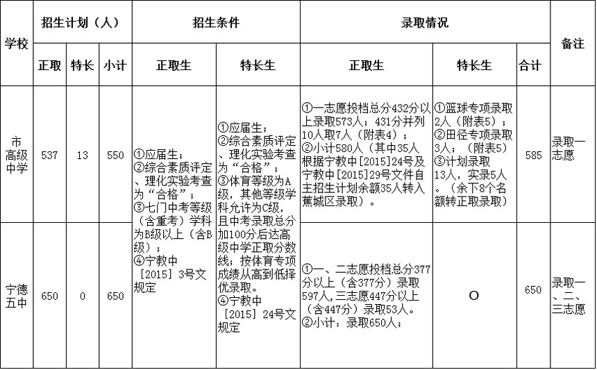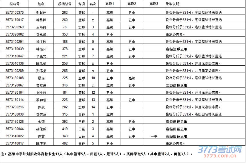 2-3 高级中学特长生录取说明(投档总分>=331分)