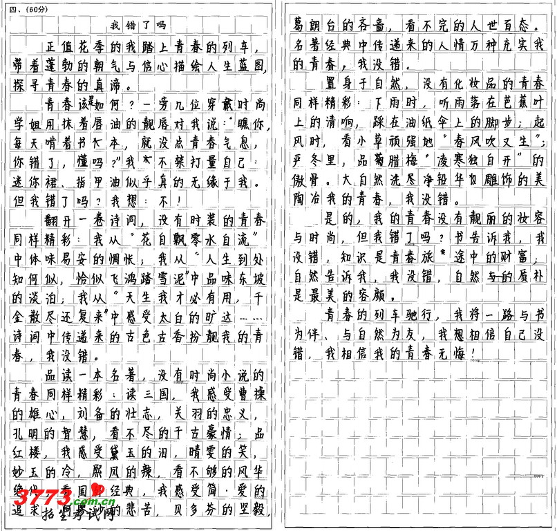 2012莆田中考满分作文我错了吗(邓晓萱擢英中学)