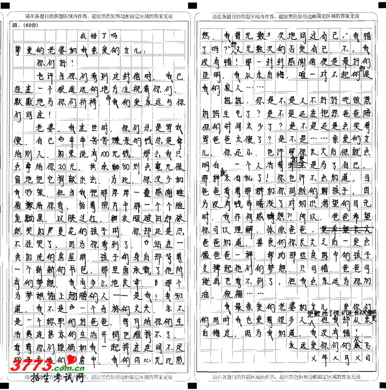 2012莆田中考满分作文我错了吗(擢英中学吴方冰)